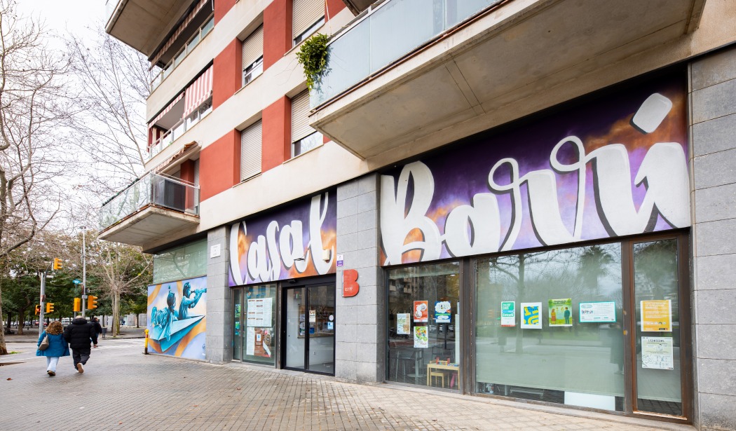 Sketching workshop led by R. Bernades and R. Pujolràs at Casal de Barri Bac de Roda, focusing on drawing urban landscapes.