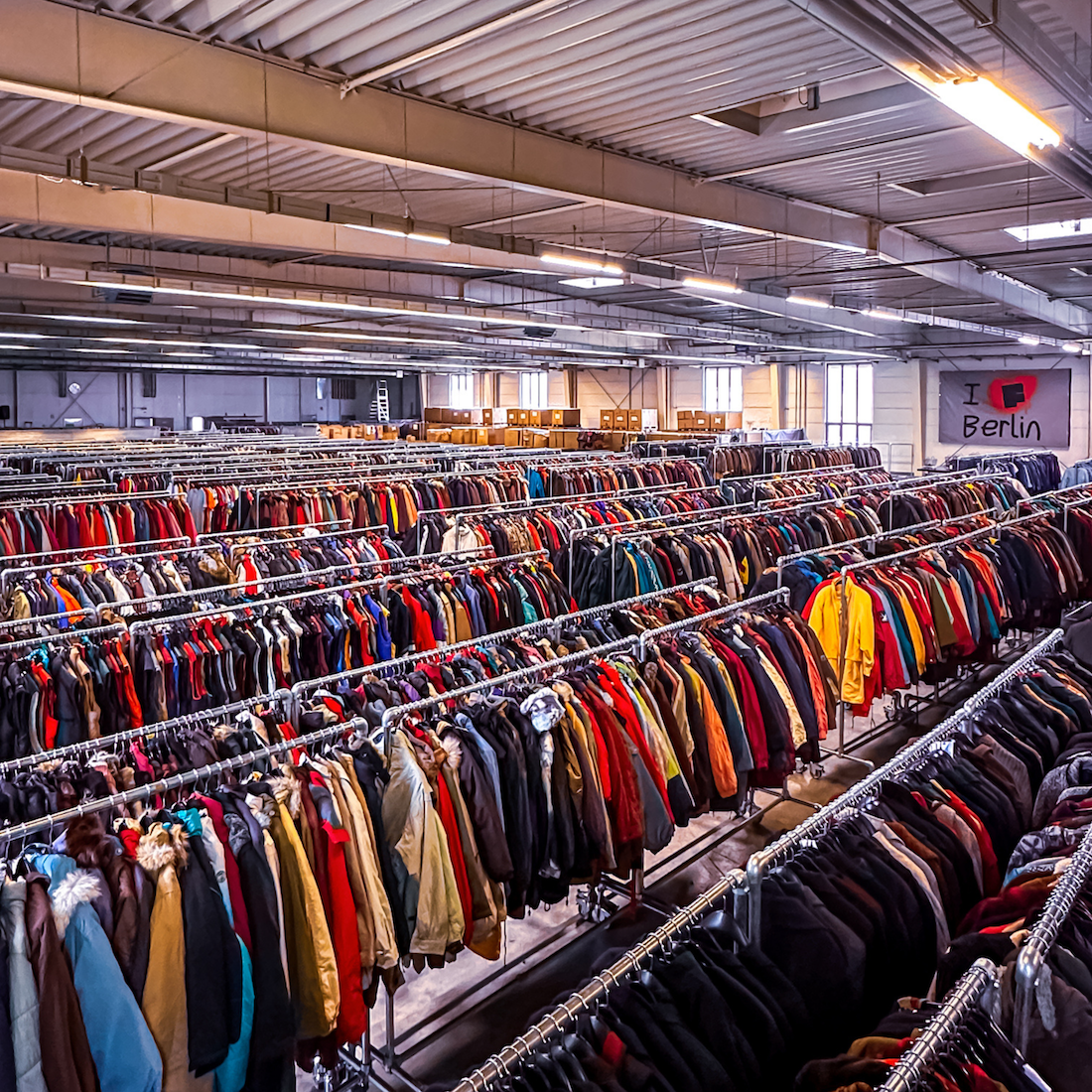 “Berlin’s Trash Show” is a large-scale vintage by-the-kilo sale and flea market held in a former warehouse.