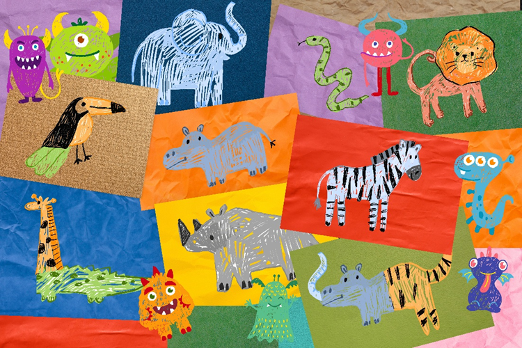 Acompañamiento familiar: taller pensado para realizarse con madres/padres/tutores, que acompañan durante toda la actividad (apoyo en escritura, recorte y montaje). Aprende a inventar criaturas nuevas mezclando animales reales y mucha imaginación… y llévate a casa un fanzine colectivo con el resultado del taller. ¡Creamos un bestiario entre todos! Elegimos 2 animales (por sorteo) y los mezclamos para inventar uno nuevo.