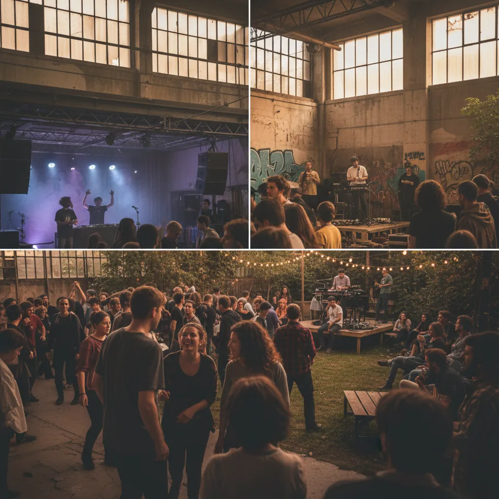 Terreno industrial reconvertido en micro-festival permanente en Lichtenberg: varias pistas, playa, bar hippie, fuego y open end extendido. Viernes y sábado todo el fin de semana.