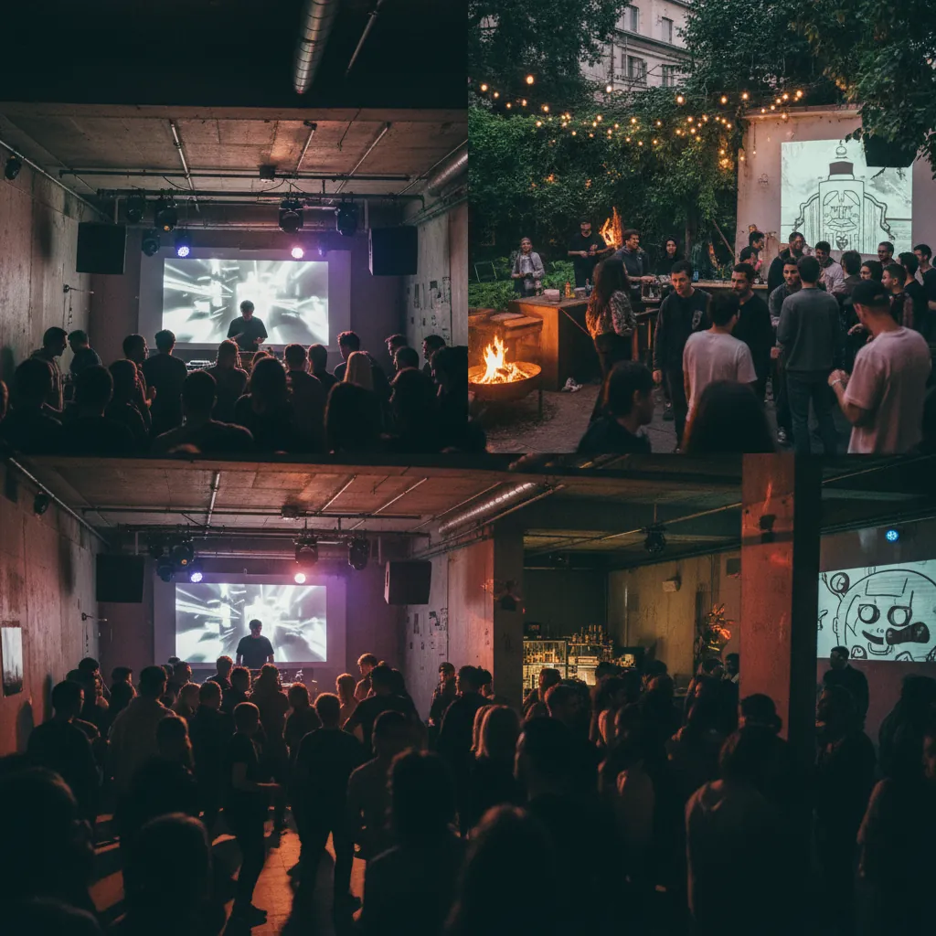 Colectivo queer y techno en Friedrichshain con dos pistas, jardín y una programación política-artística. Viernes y sábado con line-ups que mezclan escena local y nombres internacionales.