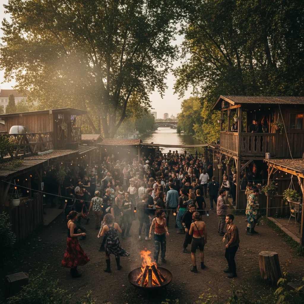 Club hippie-techno junto al Spree en Mitte. Tres pistas, cabañas de madera, jardín con fuego y un open end legendario que puede arrancar el jueves y cerrar el lunes por la mañana.