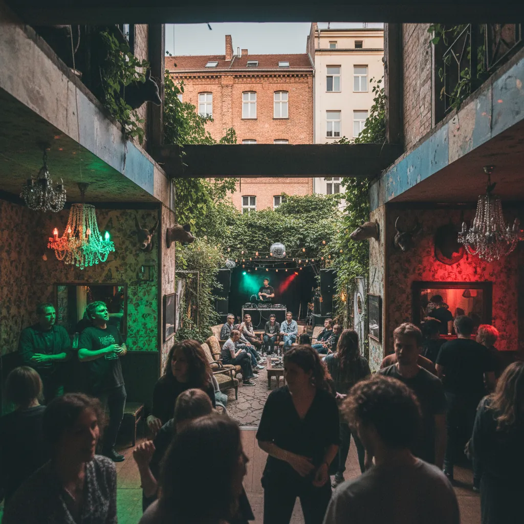 Colectivo queer y techno en Friedrichshain con dos pistas, jardín y una programación política-artística. Viernes y sábado con line-ups que mezclan escena local y nombres internacionales.