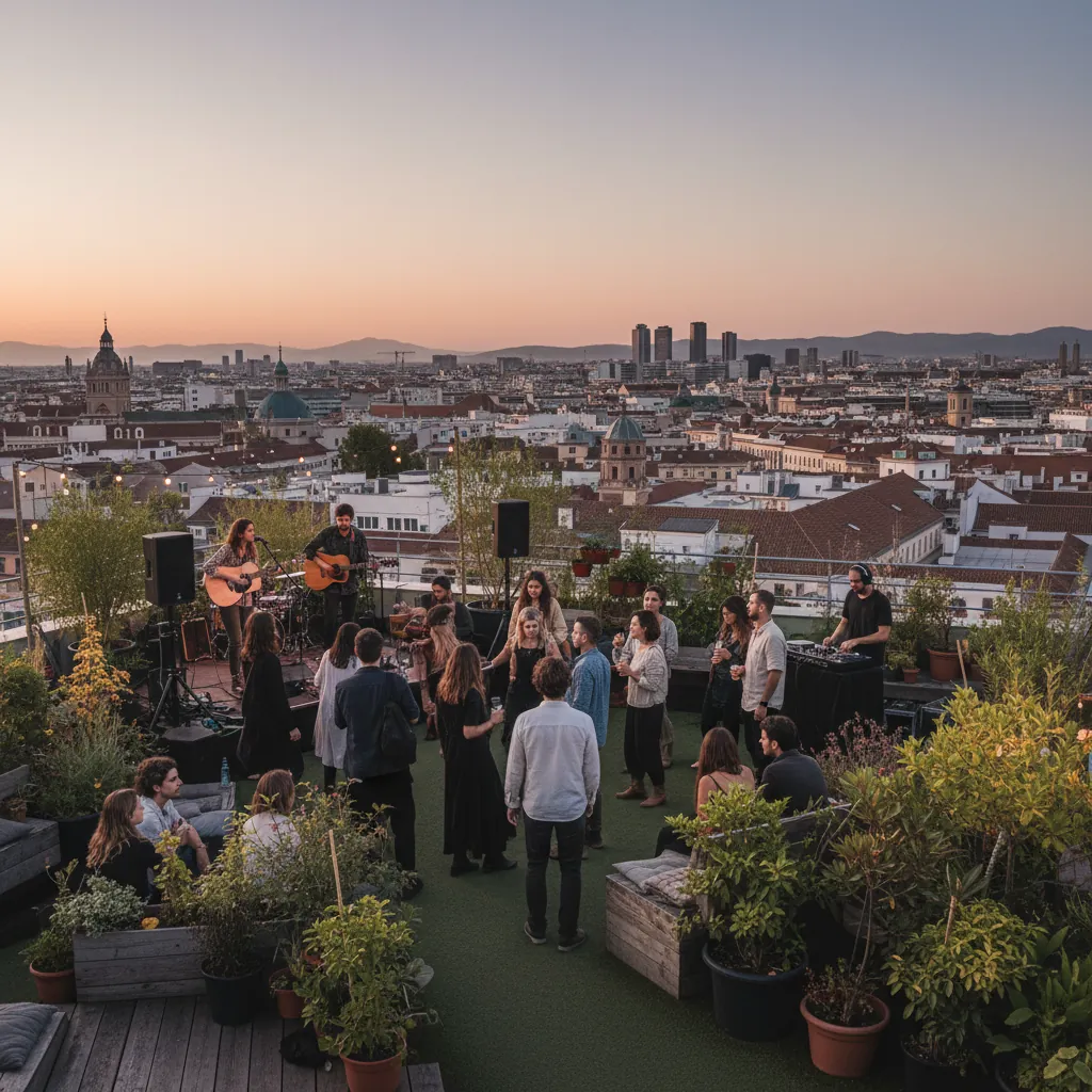 Dachterrassen-Bar-Garten im Neukölln Arcaden mit DJ-Sets, kleinen Konzerten und Open-Air-Nächten über Berlin.