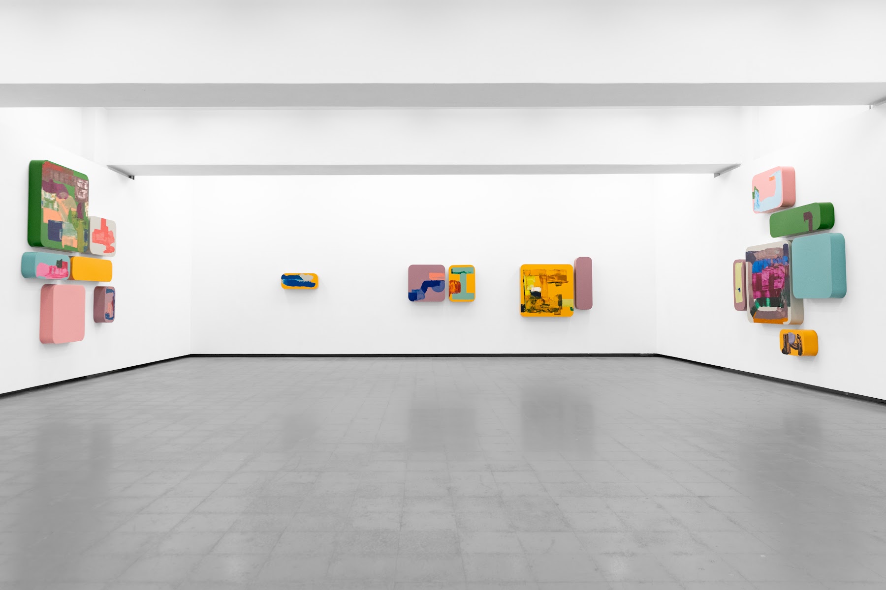 Patrícia Garrido presents contemporary paintings and sculptural pieces at Galeria Miguel Nabinho, combining two-dimensional and three-dimensional approaches to form and colour.
