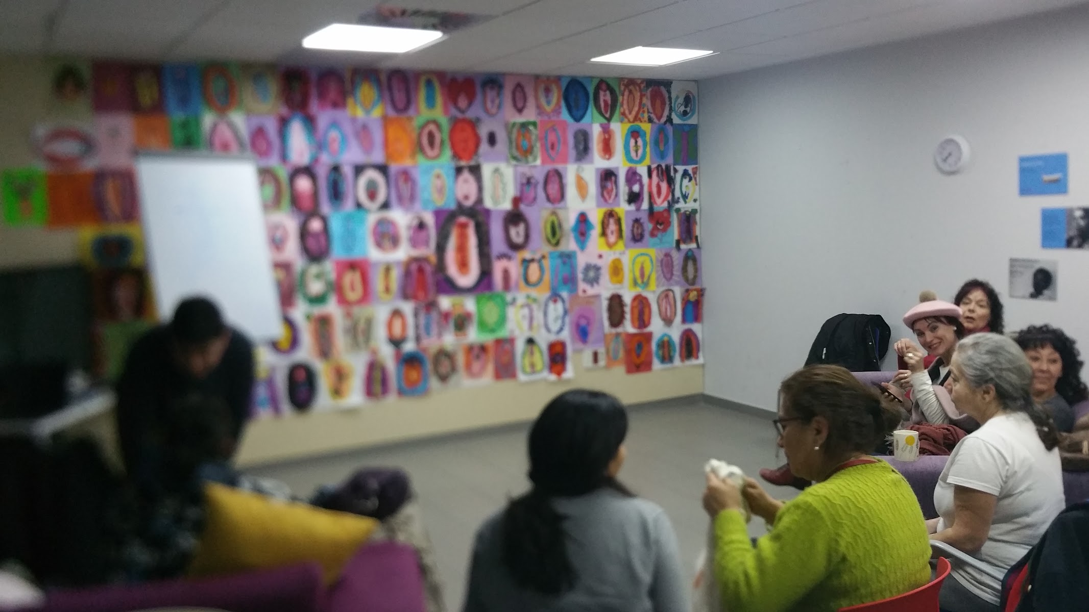 Autonomous art group workshop at Espacio de Igualdad Hermanas Mirabal in Tetuán emphasizing collaborative creative practices and self-managed artistic experimentation.